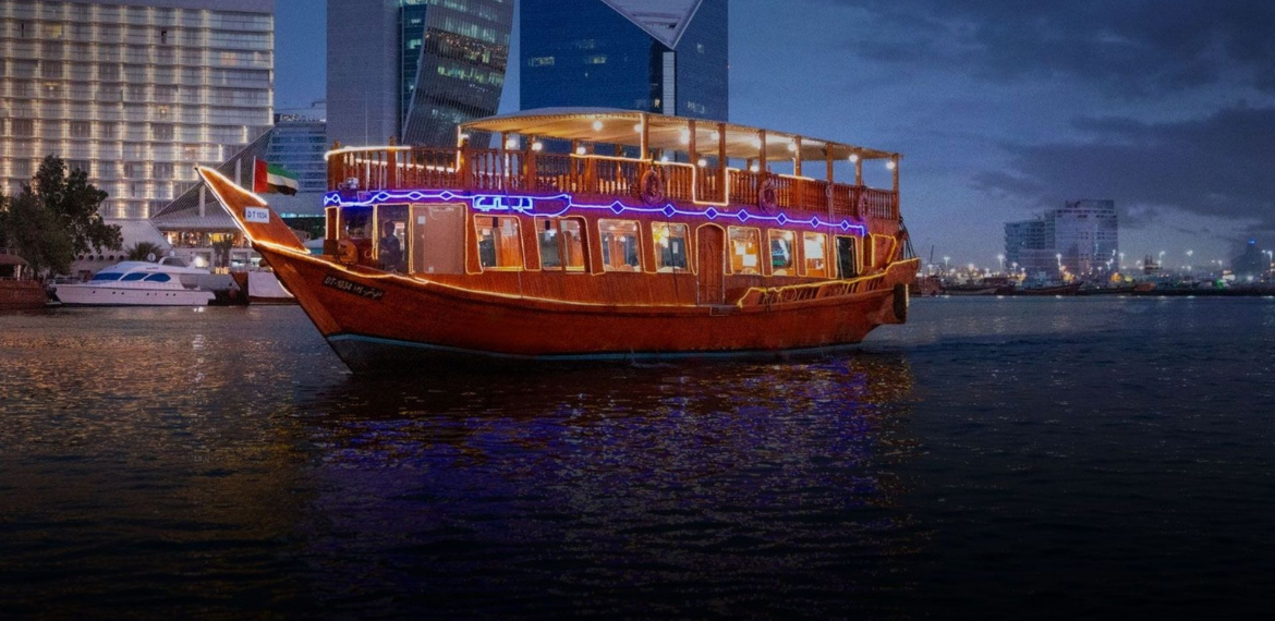 - Panoramic Views: Witness the captivating landscape of Dubai Creek as you cruise along, marveling at the architectural wonders of Deira and Bur Dubai illuminated against the night sky.